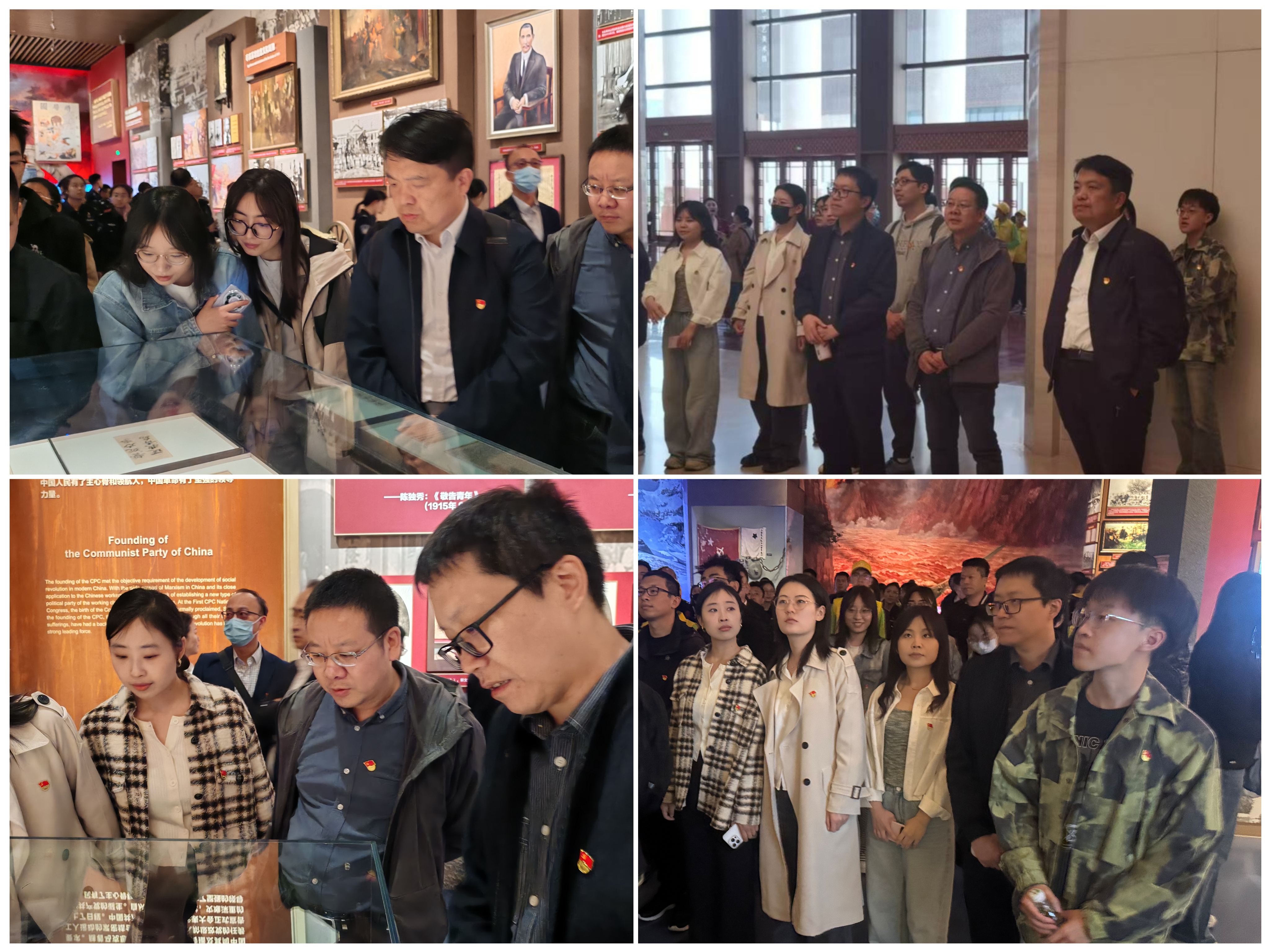 在深入学习党史的过程中,全体党员也关注到党的纪律建设在展览中贯穿全程,大家跟随讲解员重温中央八项规定精神,深刻体会作风建设带来的时代新貌。师生们认真聆听讲解,相互交流讨论。